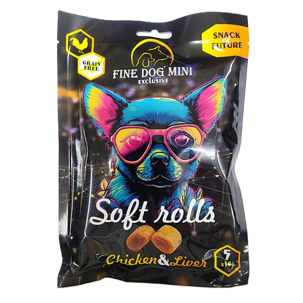 рулетики Fine Dog - курка та печінка - це ексклюзивні м'які м’ясні рулетики
