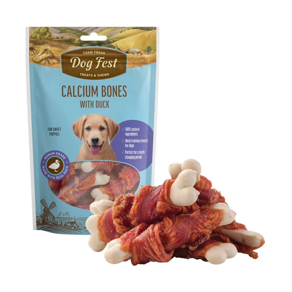Ласощі для цуценят кісточка кальцинована з м'ясом качки Dog Fest 90г