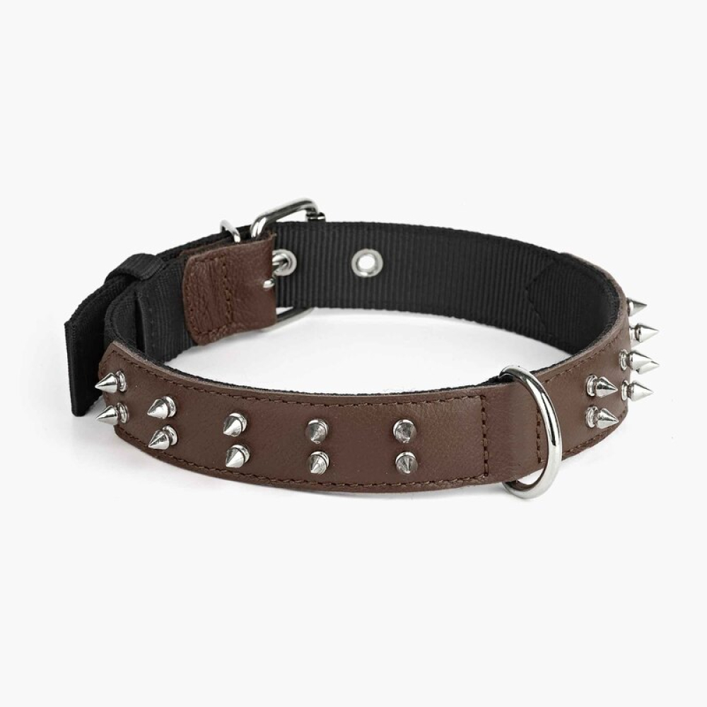 Нашийник з нейлону та шкіри з шипами Kareline 4,5см 51-64см коричневий