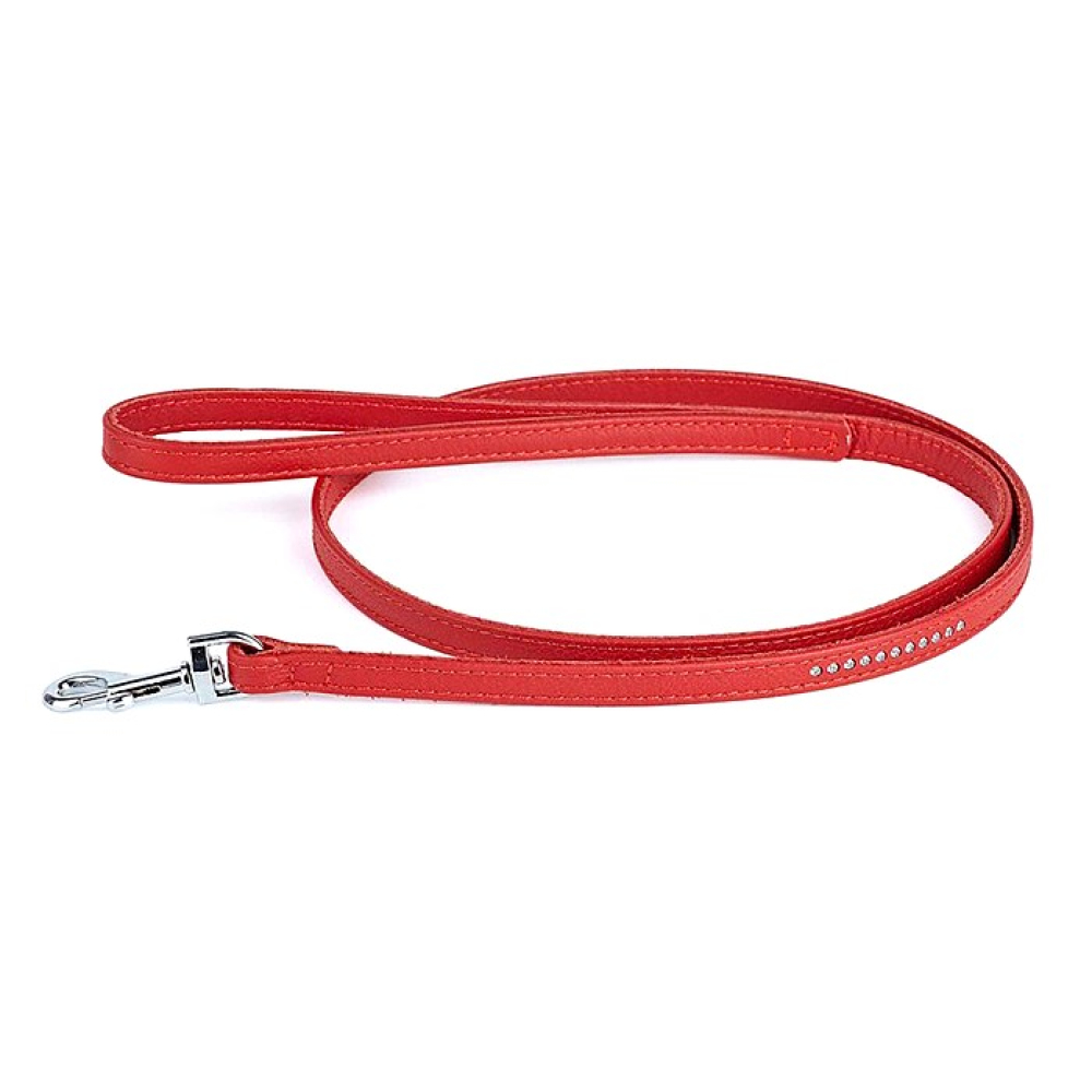Повідець з натуральної шкіри зі стразами Kareline 1,6см 1,2м червоний