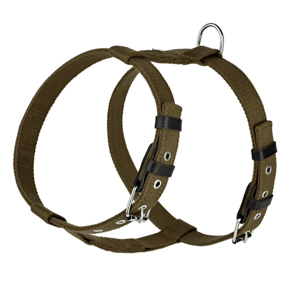 Шлейка брезентова стропа зі шкіряними накладками для собак Kareline 2 см зелена