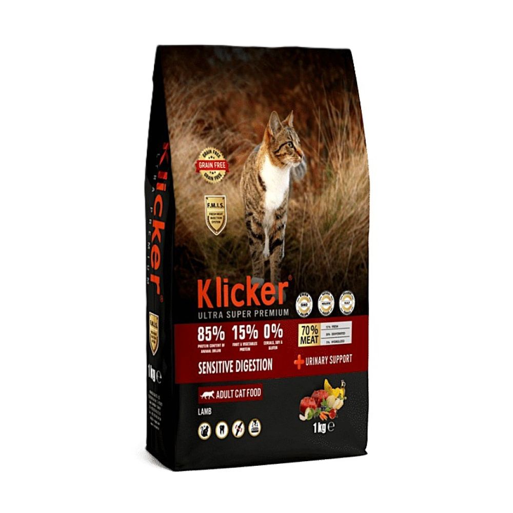 Сухий корм Klicker для дорослих котів з чутливим травленням з ягням 1 кг
