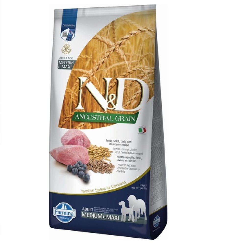 сухий низькозерновий корм для дорослих собак середніх та великих порід Farmina N&D з ягням та чорницею, сприяє
