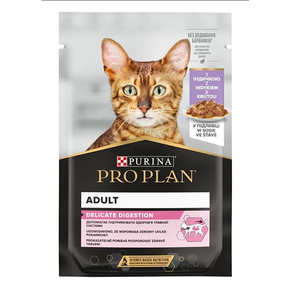 Вологий корм для дорослих кішок з чутливим травленням PRO PLAN Delicate 85г - індичка
