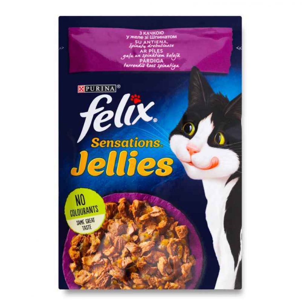 Вологий корм для котів Felix Sensations Jellies 85 г - качка та шпинат