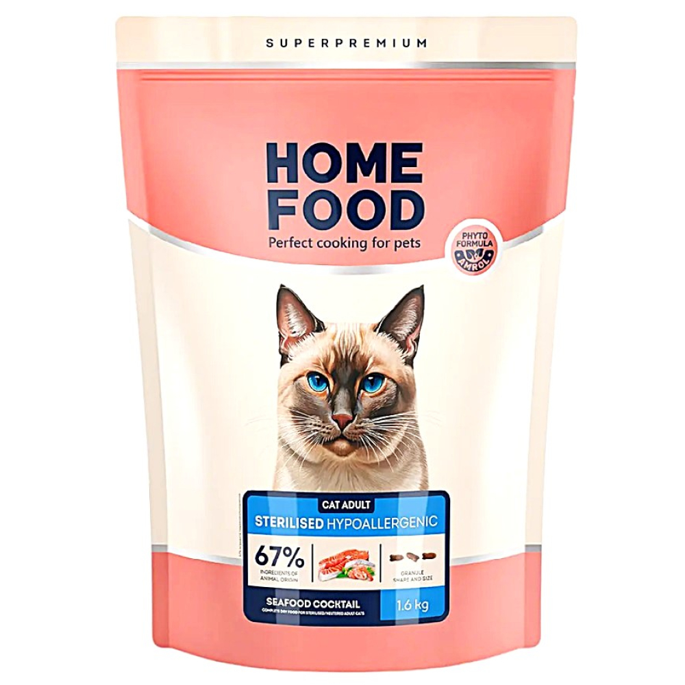 Гіпоалергенний сухий корм для стерилізованих котів Home Food Adult 1,6 кг - морський коктейль