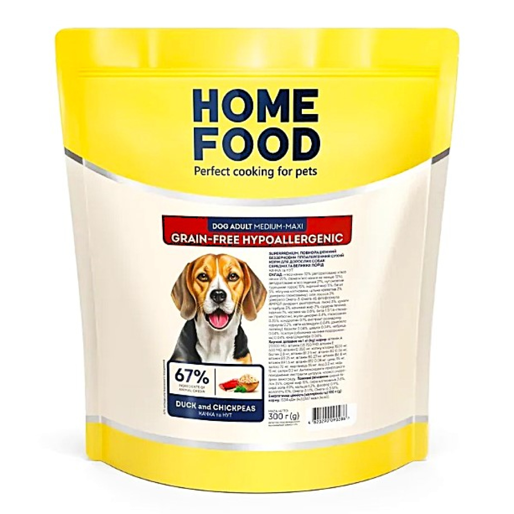 КОРМ DOG ADULT MEDIUM/MAXI Беззерновий гіпоалергенний 300г м'ясо качки з нутом ТМ Home Food