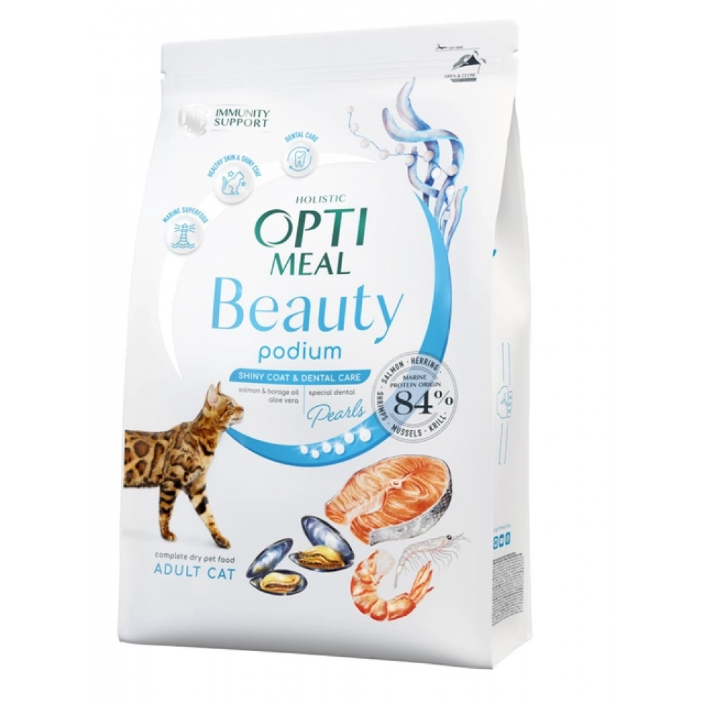 Краса - це результат здоров’я. Тому має бути здоровий підхід до краси. Лінійка Optimeal Beauty розроблена за холістичним підходом, тож це щоденне збалансоване харчування, яке дбає не тільки про здоров’я тварини, а й про її красу та збалансований настрій. PODIUM - розроблена фахівцями формула харчування, що розкриває унікальну красу вашого улюбленця. Олія лосося містить Омега 3 жирні кислоти, зокрема DHA і EPA, які підтримують здоров’я шкіри та красу шерсті. Алое вера сприяє захисту і регенерації клітин та володіє протизапальними властивостями. Олія огірочника багата на гамма-ліноленову кислоту (Омега 6), яка допомагає заспокоїти чутливу шкіру тварини, нормалізує процес линьки, сприяє росту шерсті. Якщо ви хочете зробити акцент на досконалій фізичній формі, розкішному зовнішньому вигляді чи гармонійному емоційному стані, то можливий перехід між трьома функціональними продуктами Fitness, Podium і Harmony.