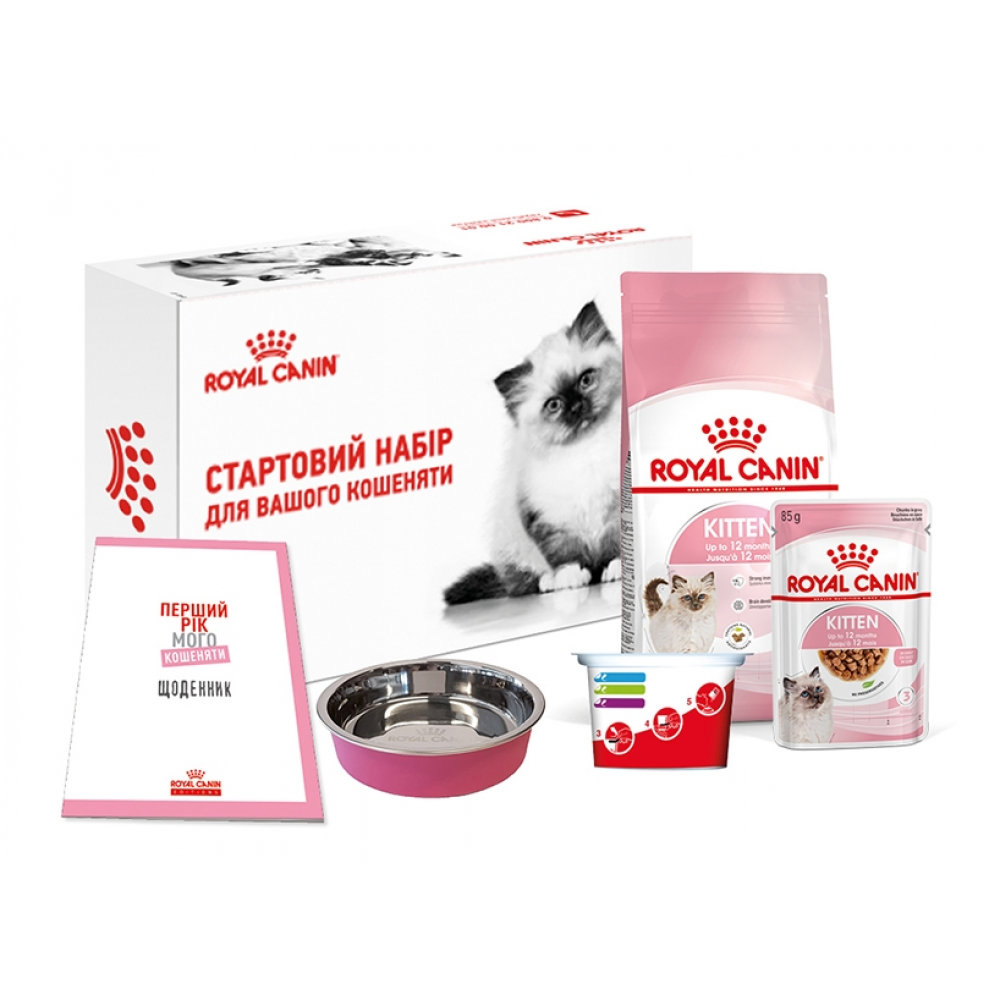 У стартовий набір для кошенят входить:- Вологий корм Royal Canin Kitten in Gravy 85 г – 1 шт;